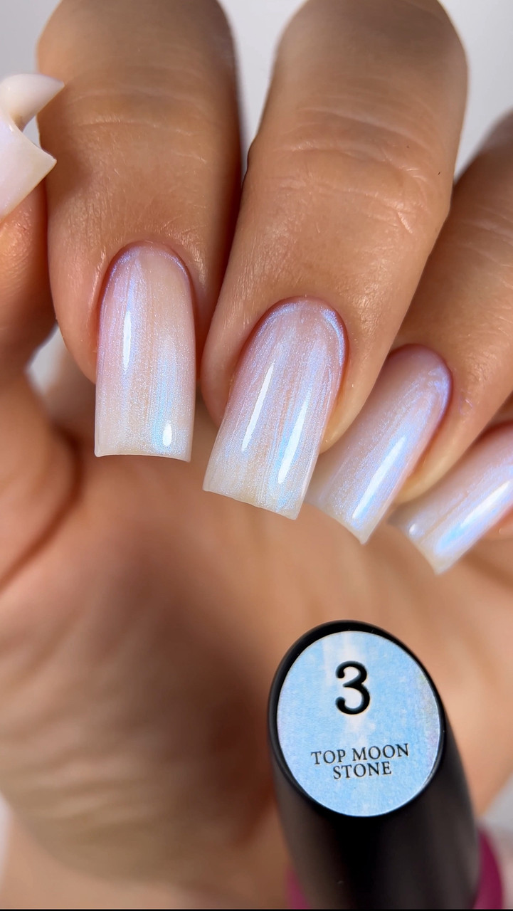 Steffani Top Moon Stone - топ з ефектом перлів та втирання! З ним можна забути про багатоетапне покриття, складний дизайн і ризик сколів. Достатньо просто нанести цей топ, і нігті виглядатимуть так, ніби майстер використав перлинне втирання.